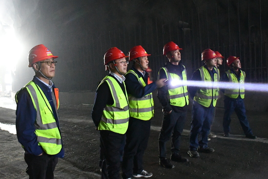 劉慶東一行首先來到項(xiàng)目施工現(xiàn)場,實(shí)地察看了主廠房、主變洞、尾水隧洞等關(guān)鍵部位的施工進(jìn)展情況,聽取了項(xiàng)目部關(guān)于工程進(jìn)度、安全管理、質(zhì)量控制及資源配置等方面的詳細(xì)匯報(bào),對(duì)項(xiàng)目部克服復(fù)雜地質(zhì)條件和施工難題所取得的顯著成績給予了充分肯定。同時(shí)要求項(xiàng)目部面對(duì)即將到來的施工高峰與復(fù)雜作業(yè)局面,務(wù)必保持清醒頭腦,將安全生產(chǎn)置于首位,以極端負(fù)責(zé)的態(tài)度筑牢安全防線;必須深入推進(jìn)精細(xì)化管理,確?;炷翝仓群诵墓ば蛸|(zhì)量受控;必須加強(qiáng)前瞻性策劃與系統(tǒng)性資源統(tǒng)籌,有效應(yīng)對(duì)多專業(yè)、多界面交叉作業(yè)帶來的協(xié)調(diào)挑戰(zhàn),為工程后續(xù)平穩(wěn)高效推進(jìn)奠定堅(jiān)實(shí)基礎(chǔ)。