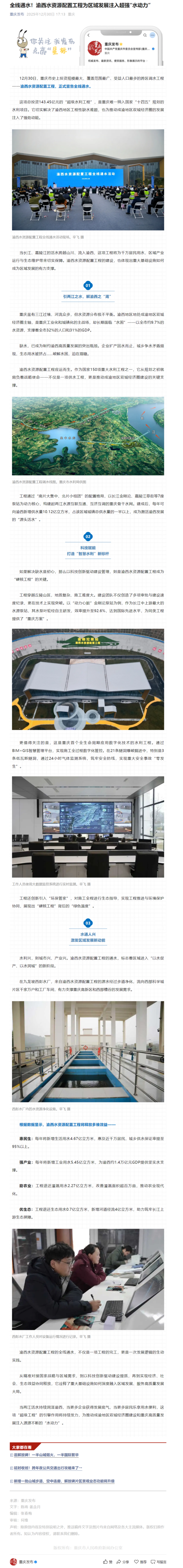 12月30日,重慶市史上投資規(guī)模最大、覆蓋范圍最廣、受益人口最多的跨區(qū)調(diào)水工程——渝西水資源配置工程,正式宣告全線通水。